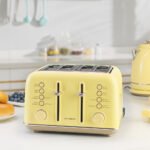 Enjoying your morning routine starts with the Buydeem. Made to bring happiness to your kitchen with no more burnt or wasted toast. the dual sides and 7 shade settings along with bread. bagel. or English muffin modes make all the difference. The true bagel mode heats up both sides of the bagel initially. then toasts just the cut sides. The bread slice mode toasts evening within 3 minutes. Finally. the English Muffin mode carefully heats both sides with delicate. perfectly timed care. No one loves struggling to set up a toaster first thing in the morning. instead the vintage style of this machine makes a great countertop accessory. For easy cleaning. the removable. dual. crumb trays slide out from the behind. The extra-long 40-inch cord and storage area allows you to place this toaster and use it anywhere.