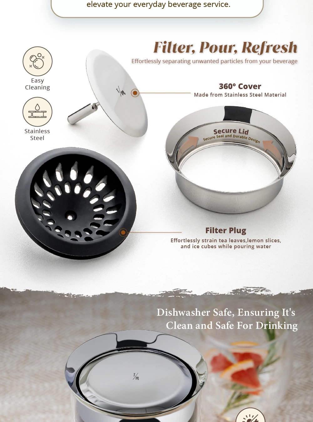 • Built-In Strainer: The lid features an integrated strainer. effortlessly separating unwanted particles from your beverage.