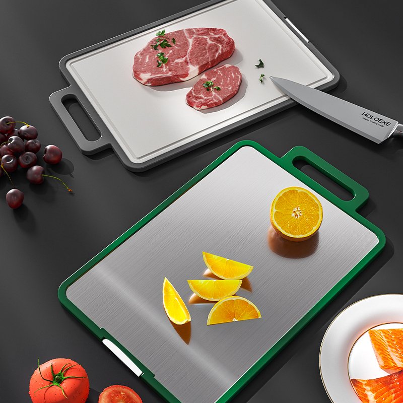 On one side. you’ll find a premium-grade 304 stainless steel surface. providing a sleek and sturdy platform for chopping. slicing. and dicing. Not only is stainless steel incredibly durable. but it also offers exceptional resistance to stains. odors. and corrosion. ensuring long-lasting performance in your kitchen.