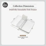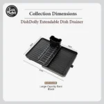Maximize your kitchen space with our stylish and versatile DishDolly Extendable Dish Drainer Rack. Available in sleek black or classic white. this drainer rack features a convenient utensil holder and dedicated slots for plates and bowls. ensuring organized drying. Under bumps design allows excess water to be drained efficiently without hassle and easy of maintainance. Its extendable design adapts to your needs regardless of length or size. providing ample space for all your dishes. When not in use. simply retract it for compact storage. making it perfect for kitchens of any size. Combining functionality and elegance. this dish drainer rack makes dishwashing a breeze.