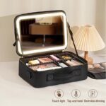 GORISGARMO Travel Makeup Bag with LED mirrorCosmetic Bag Adjustable Dividers, MakeupOrganizer Bag with Lighted Mirror 3 ColorScenarios Adjustable Brightness,WaterproofProfessional Cosmetic Artist Organizer.PerfectChristmas Gift For Friend & Family,