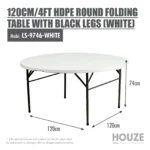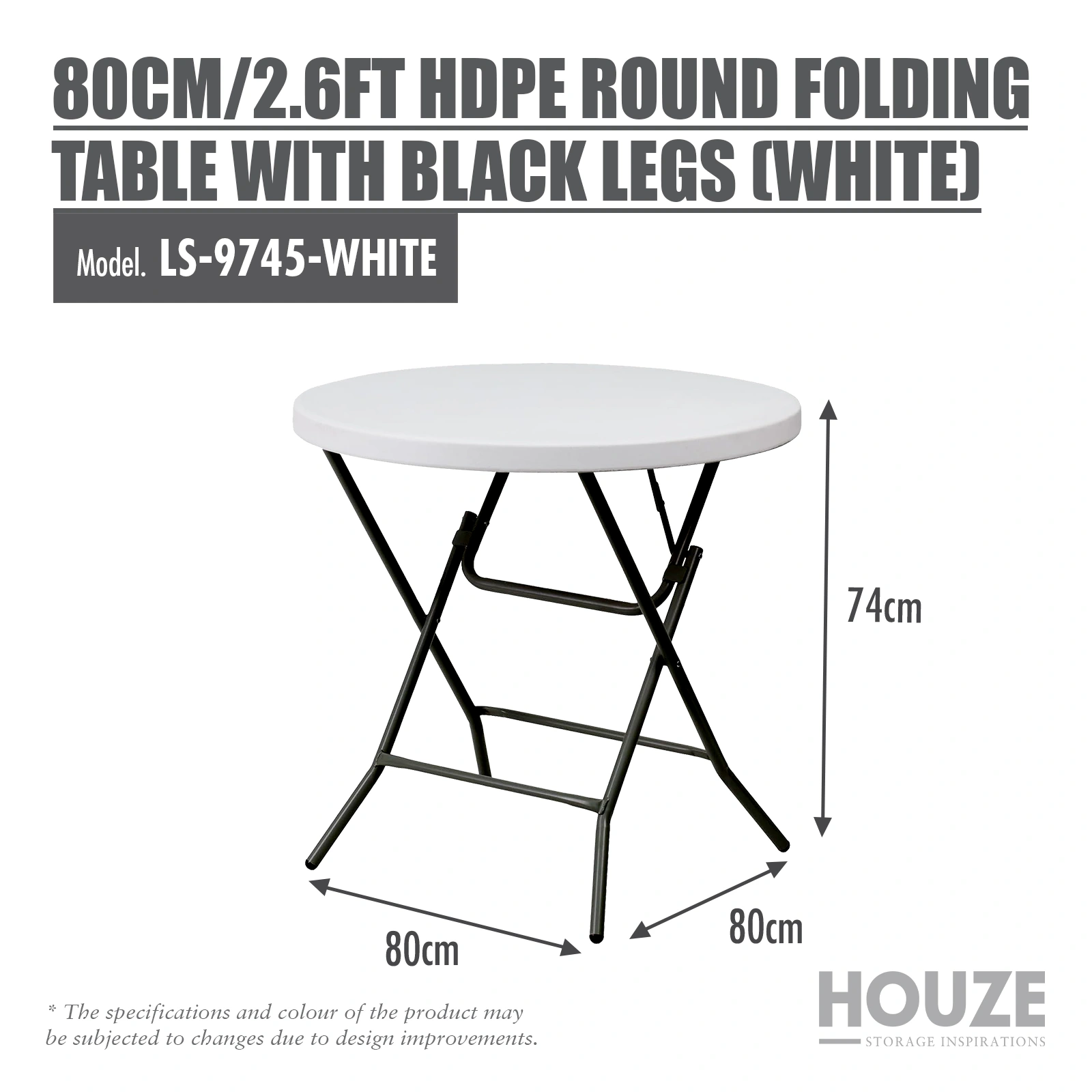 HOUZE – 80|86|122|152cm HDPE Folding Table with Black Legs – Portable | Office | Plastic | Outdoor