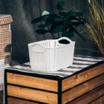 The HOUZE Braided Storage Basket with Handle (Small) is a modern take on a contemporary style for storage. It’s made with 100% Virgin Polypropylene (PP) plastic weaved in a stylish pattern and comes in two color options! The aesthetic value is paired with a tough exterior. keeping your items safely contained inside. It’s multi-purpose storage that can beautify any home.