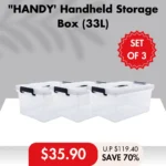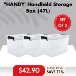 Life’s rapid pace demands efficient solutions. Step into the spotlight. the ‘HANDY’ Handheld 20L Storage Box. Moulded from sturdy polypropylene. it promises longevity for your belongings. The clarity of design allows effortless content spotting. Its ergonomic handle promises easy portability. while the snap-lock side handles seal your possessions securely. Stacking? Its reinforced bottom guarantees stability. For the dynamic souls of Singapore. the ‘HANDY’ Collection is the panacea for storage challenges. Welcome a more streamlined and ‘HANDY’ existence today.
