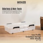 Introducing the HOUZE – 35L/45L ‘LOW PROFILE’ FlipEase Underbed Storage with Wheels (Clear). culminating in refined design thinking and aesthetic practicality. This range celebrates the essence of storage solutions without compromising style. seamlessly weaving functionality with modern charm.