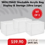 The MollyBag – Stackable Acrylic Bag Storage Collection offers an elegant and efficient way to organize your handbags and accessories while enhancing the look of your space. Perfect for fashion lovers who want to protect and display their collection in style.