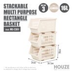 HOUZE Stackable Multi Purpose Rectangle Basket (Dim: 34.5x24x20cm)