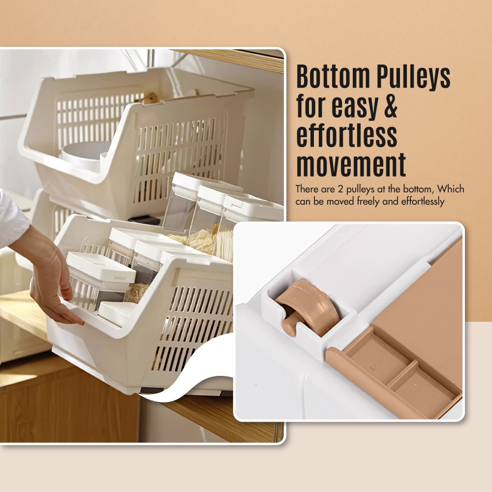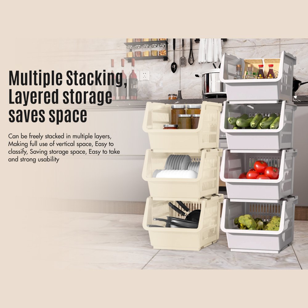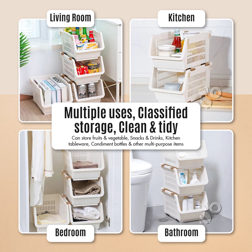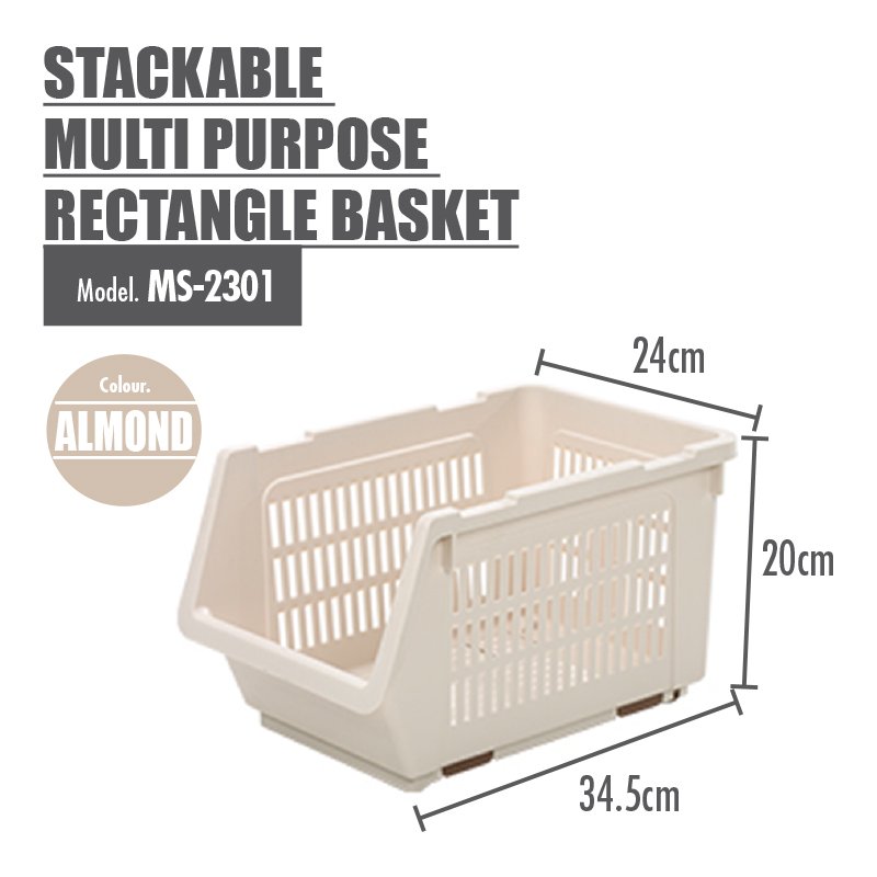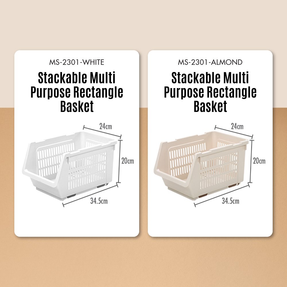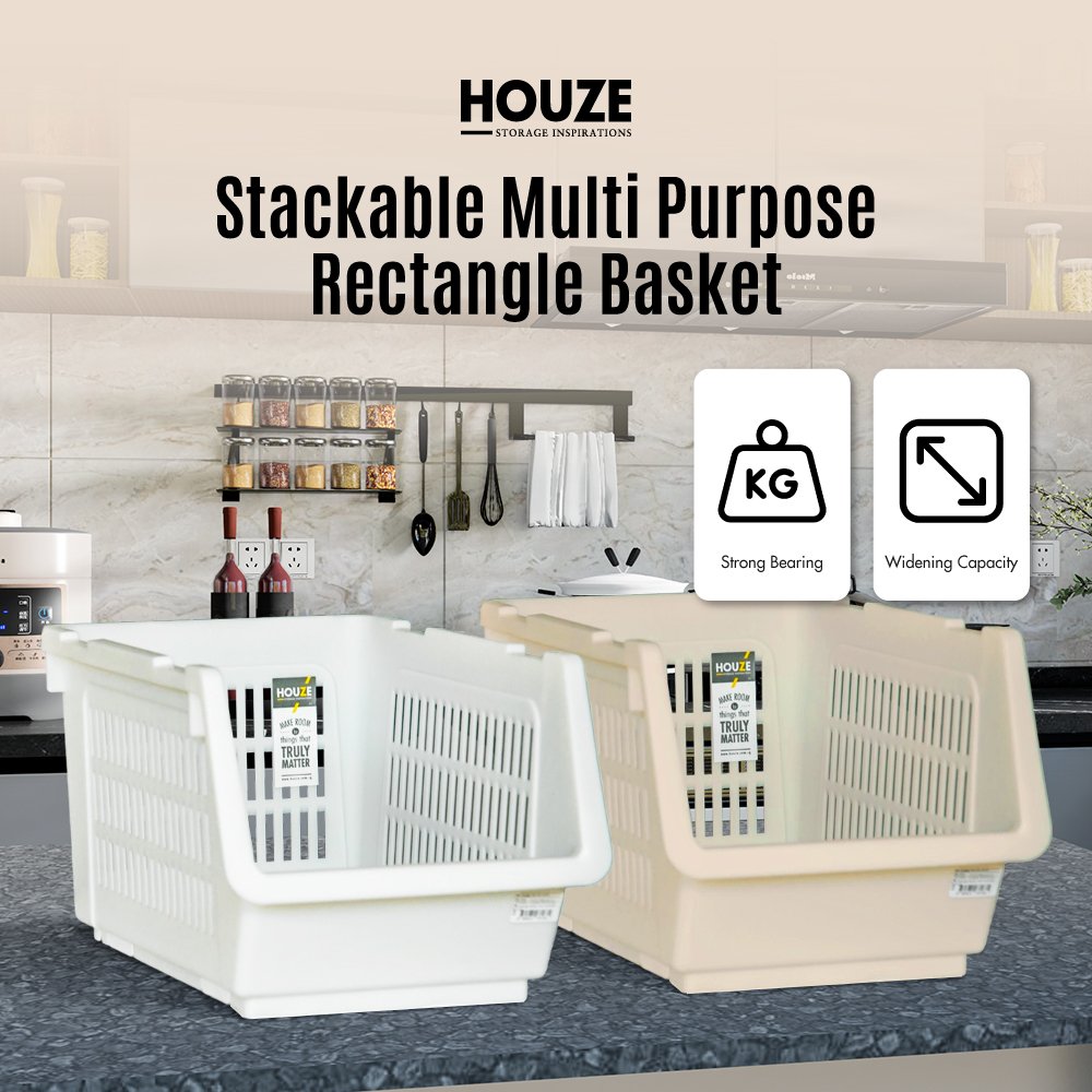 HOUZE Stackable Multi Purpose Rectangle Basket (Dim: 34.5x24x20cm)