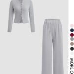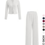 【Button Front】:The crop top features a button front,providing a modern twist that differentiates it fromtypical plain tops in similar sets.【Elastic Waist】:The elastic waistband on the trousersensures a secure fit while allowing for ease of movementthroughout the day.